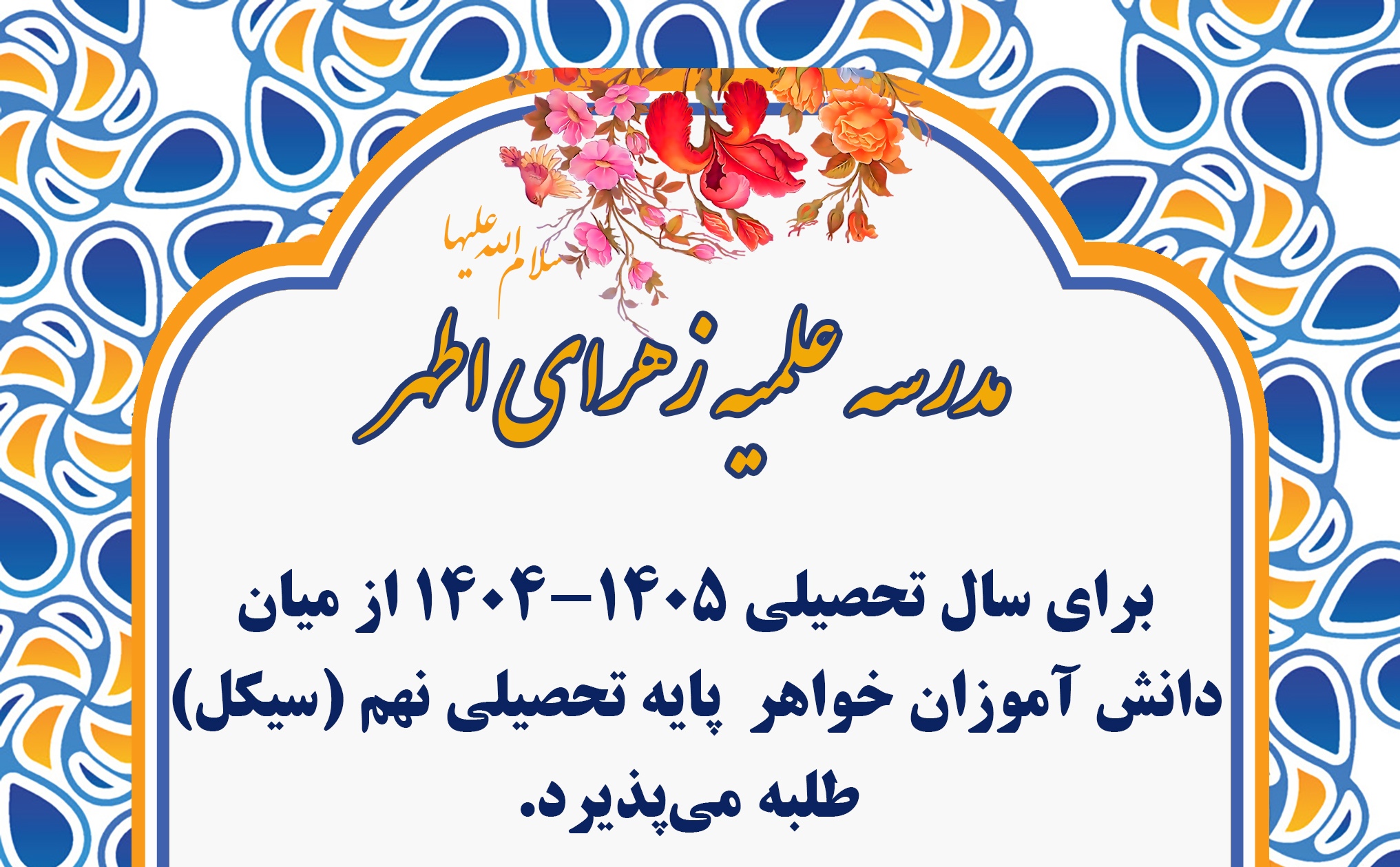 آغاز پذیرش مدرسه علمیه زهرای اطهر در سال تحصیلی ۱۴۰۵ـ۱۴۰۴